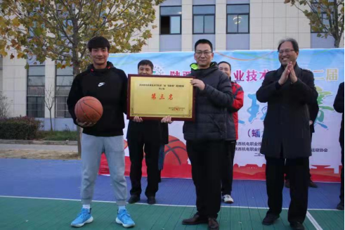 11月15日下午四点半,篮球赛闭幕式在蟠龙校区篮球场举行,公司经理贾九荣和副经理卢彦峰出席了闭幕式,公司党委书记伊逊智为获奖的篮球队颁发了奖状和奖品。