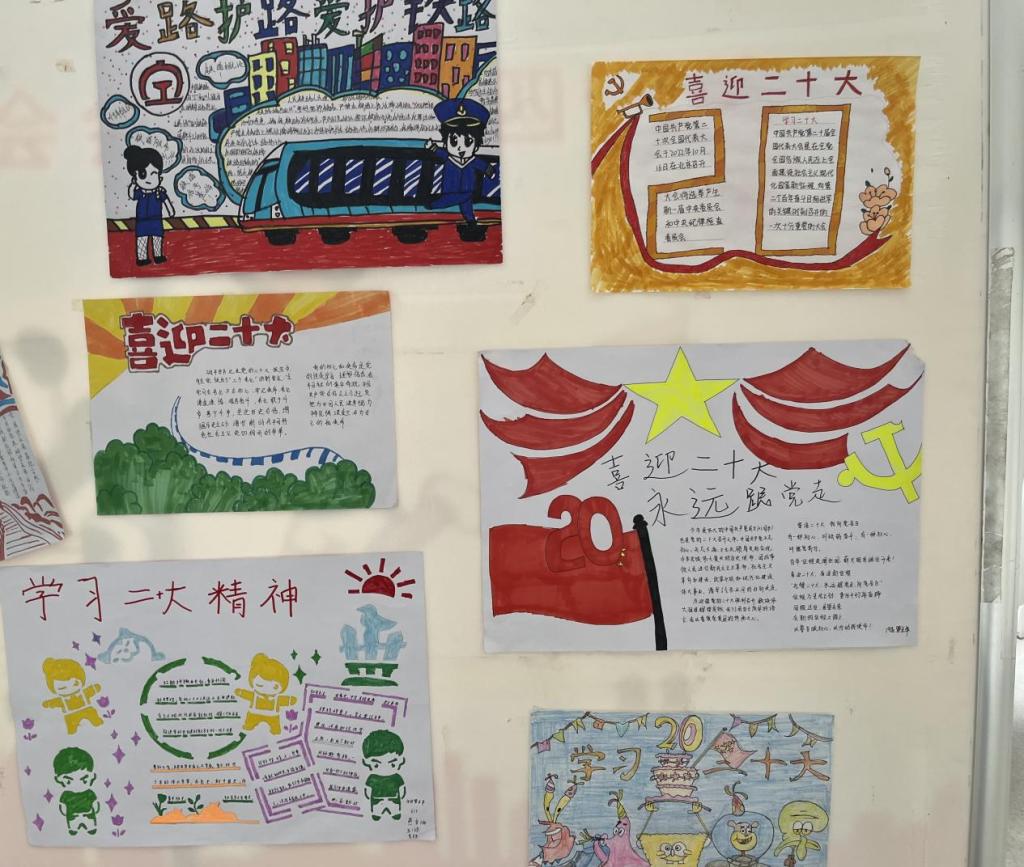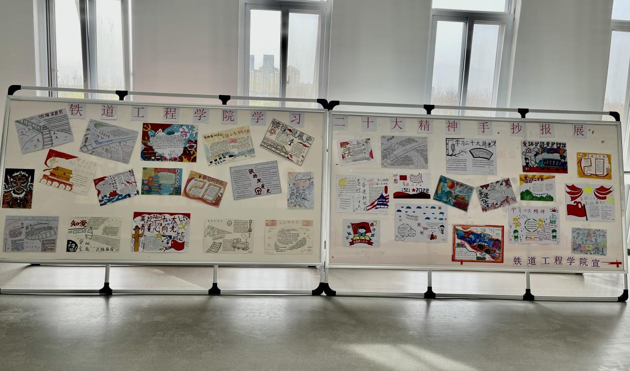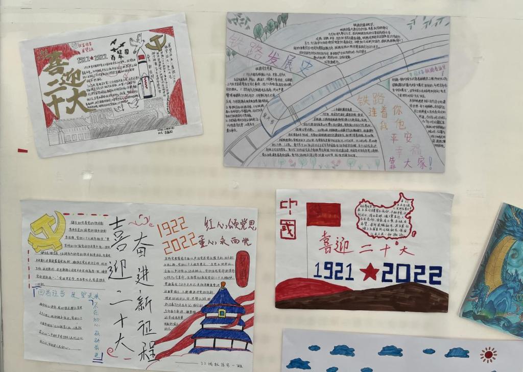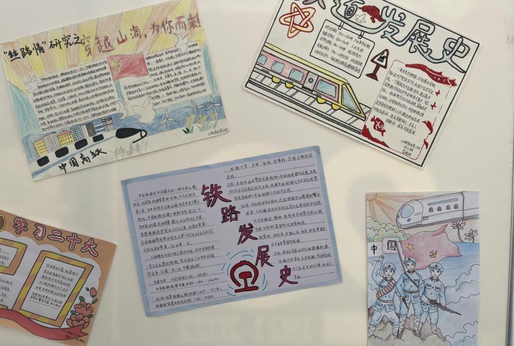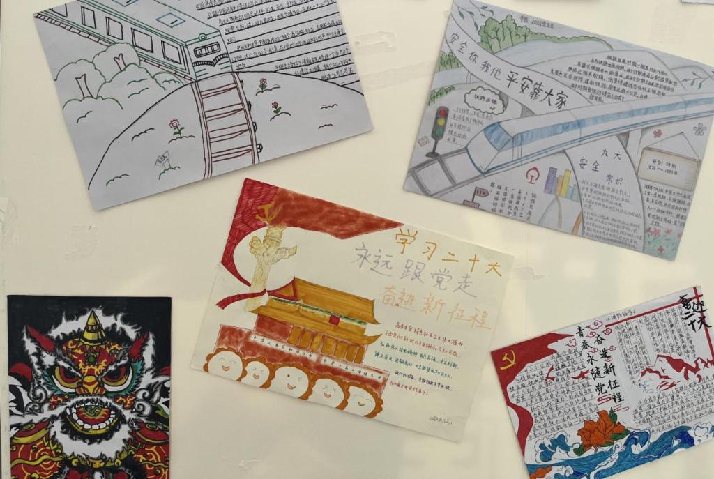 本次手抄板展共展出tyc122cc太阳成各班员工作品50余幅。同学们挥洒笔墨、以画传情,一幅幅作品展现了公司学子学习党的二十大精神的深刻感悟,同时部分员工也把思想学习与自身所学专业实际相结合,描写和绘画出了当代青年人对于铁道精神的新认知。
