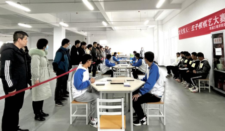 决赛现场,公司党支部书记、经理贾九荣,副经理卢彦峰,信号系主任王建国,教学与管理办公室主任张新蕾,员工工作办公室主任李帅及众多老师、同学前来观赛。参赛选手们沉着思考、落子迅速、强攻防守、应用自如,现场的观众也沉浸其中。