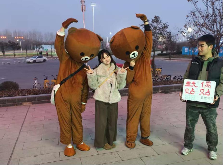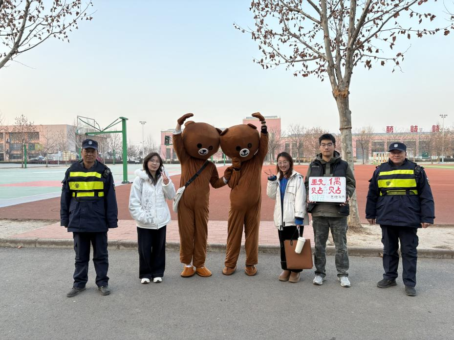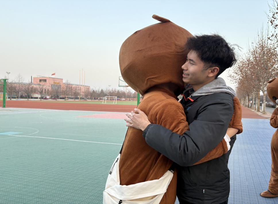 活动前期,公司员工会精心筹备,在现场设置“暖心拥抱站”,并安排身着布朗熊玩偶服的“抱抱使者”热情迎宾,让过往师生感受到满满的诚意与暖意。公司辅导员鼓励大家勇敢敞开怀抱,在真诚互动中感受温暖与支持。