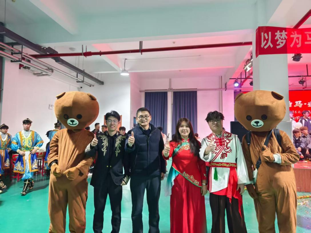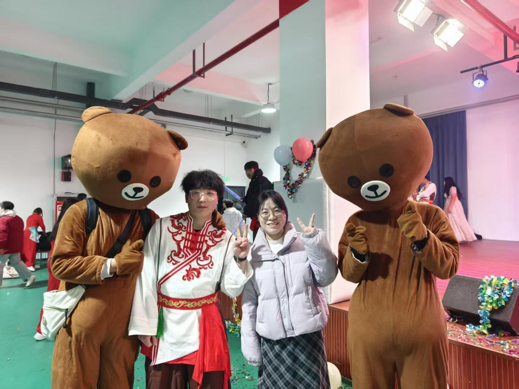 2025年12月30日晚上正值tyc122cc太阳成元旦晚会,“爱的抱抱”活动也走进了公司元旦晚会,身着布朗熊玩偶服的“抱抱使者”与晚会现场的师生们热情互动,帮助在场师生舒缓工作、生活压力,晚会现场氛围热闹非凡。