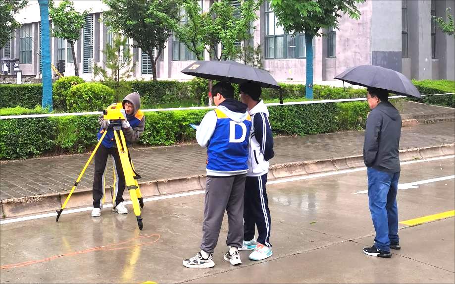 本次比赛共有36支队伍参赛,该赛项为团体赛,每支参赛队由4名选手组成,以直接决赛的方式要求4名选手协作完成“一级导线测量”、“二等水准测量”、“1:500数字测图”3个竞赛项目。尽管比赛期间天气多变、阵雨不断,给室外进行的赛项带来了困难,但公司学子沉着冷静、耐心细致的应对比赛。