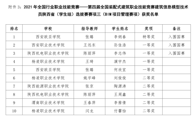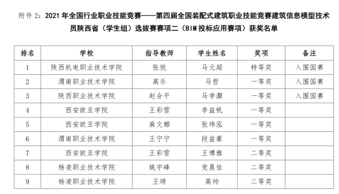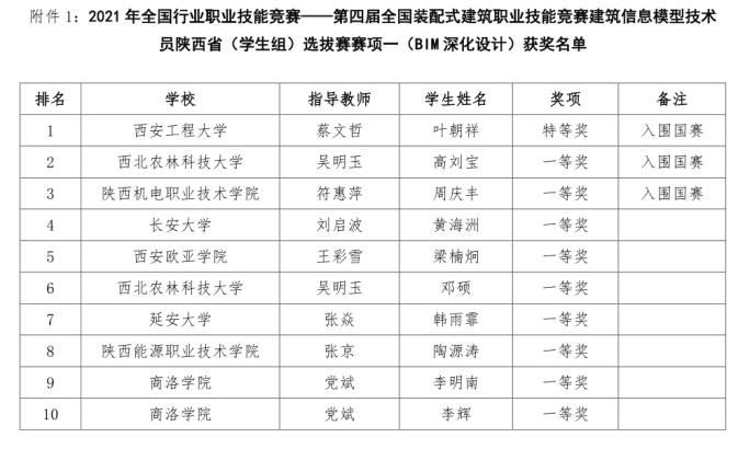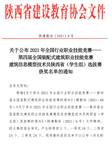 喜报!tyc122cc太阳成学子在第四届全国装配式建筑职业技能竞赛建筑信息模型技术员陕西省(员工组)选拔赛中喜获佳绩