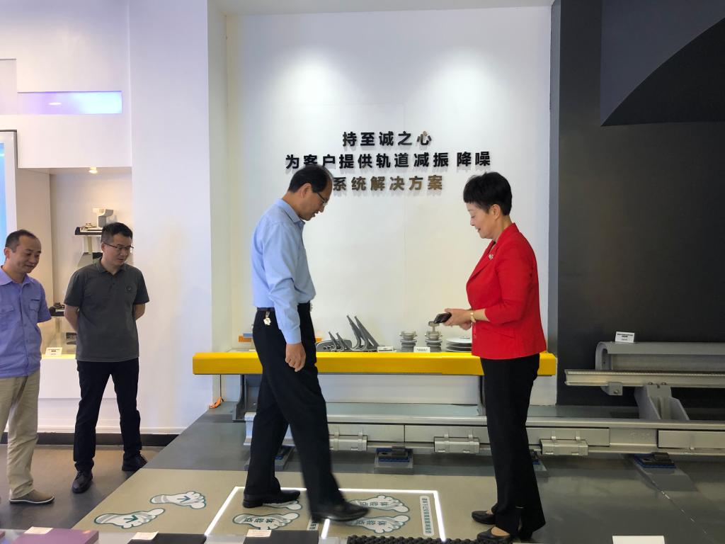 伊逊智一行受到陕西长美科技集团有限公司董事长李慧玲的热情接待。李慧玲董事长详细介绍了企业从诞生到发展,再到壮大的成长历程,讲述了企业发展过程中的业务转型与升级,近期目标与远景规划。她讲到陕西长美科技集团有限责任公司已成为我国铁路及城市轨道交通领域轨道减振降噪及供电绝缘防护产品的专业制造集成商。主要产品包括轨道高分子材料系列产品,新型中高级减振扣件、系列减振弹性体、道砟道床隔振垫、浮置板道床隔振垫、调谐式复合弹簧隔振器、钢轨波磨抑制器、系列宽频钢轨阻尼减振降噪器等产品。