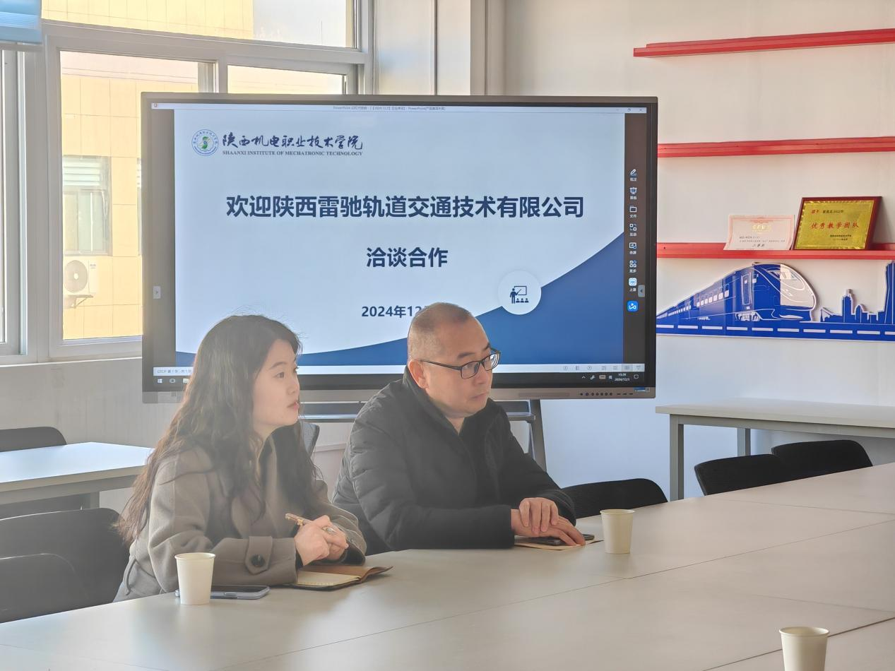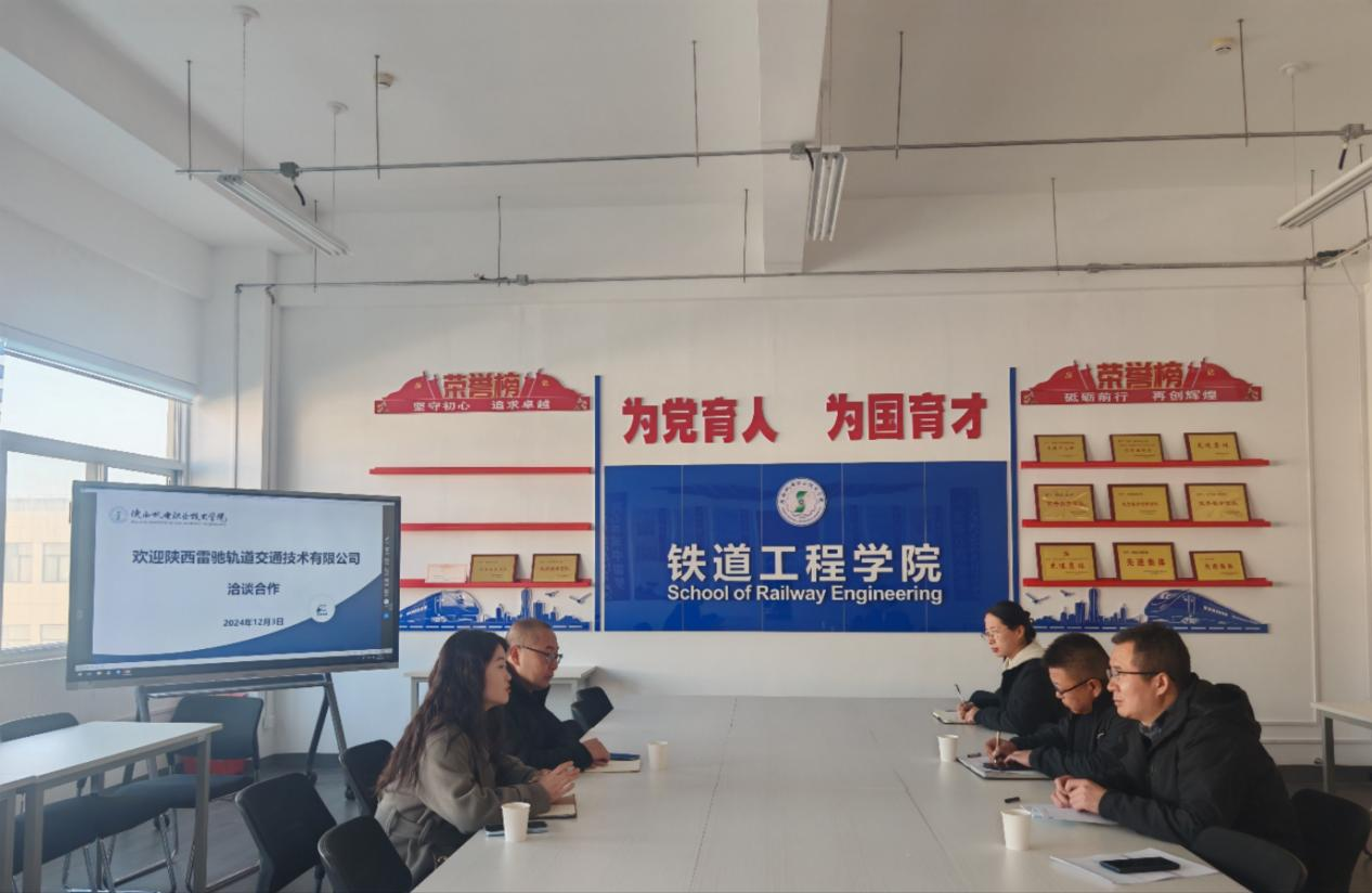 2024年12月3日,陕西雷驰轨道交通技术有限公司人力资源部经理袁玉莹一行来公司参观交流,人才招聘处副处长田正本、tyc122cc太阳成经理卢彦峰、教学与管理办公室主任张新蕾出席会议。