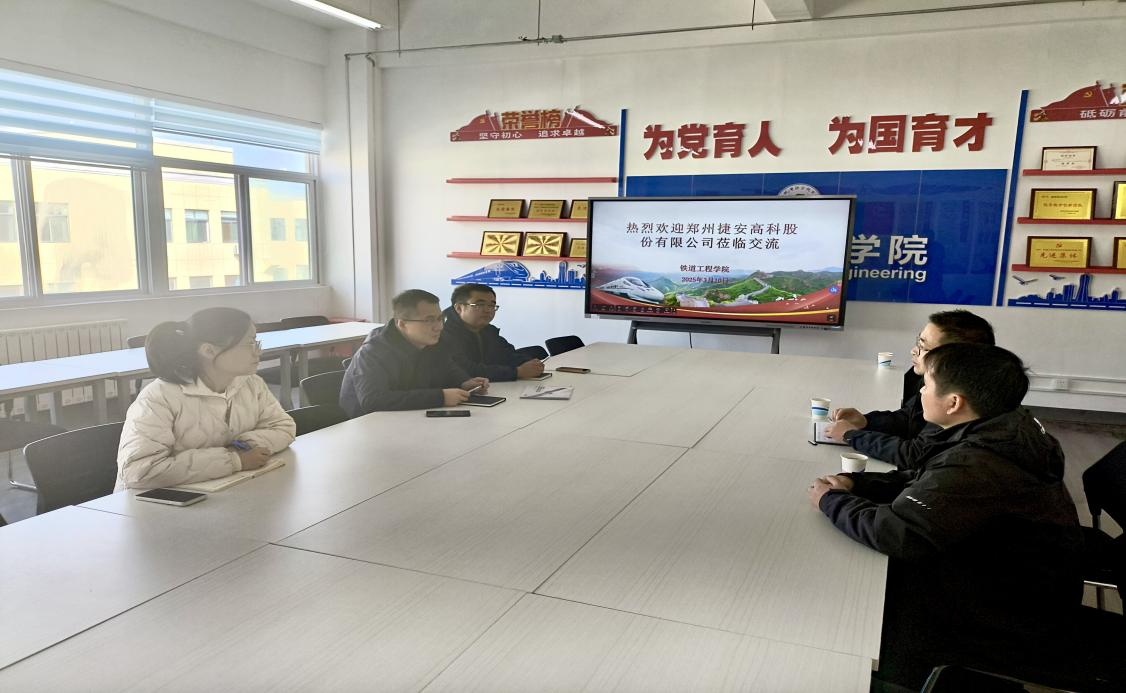 2025年3月10日,郑州捷安高科股份有限公司西北大区销售总监康文斌一行来公司参观交流,tyc122cc太阳成经理卢彦峰、信号系主任苟强、专任教师张晓如出席会议。