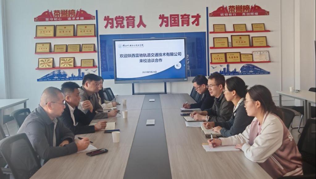2025年9月24日,陕西雷驰轨道交通技术有限公司董事长邹斌一行来公司洽谈交流,tyc122cc太阳成经理卢彦峰、副经理张新蕾、信号系教师赵国庆、柳敏瑞出席会议。