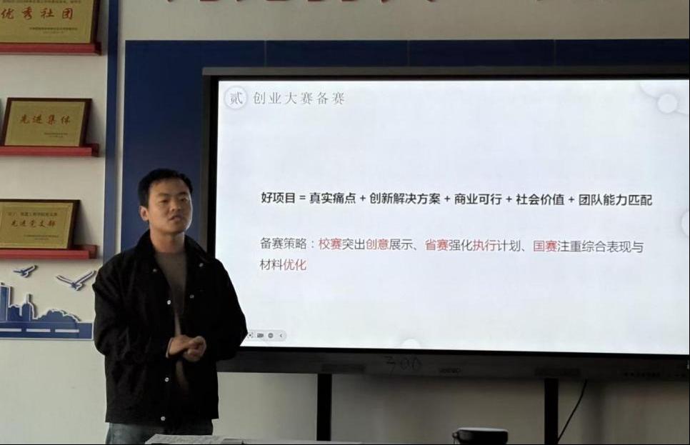 接下来,齐海鹏老师以“创新创业大赛培训”为主题交流经验。他从备赛环节入手,着重讲解“项目筛选”的要点,深入分析“项目申报书及申报材料”的核心要求,并结合往届获奖项目总结其共性优势,为指导员工参与创新创业大赛提供了切实可行的方法与经验。