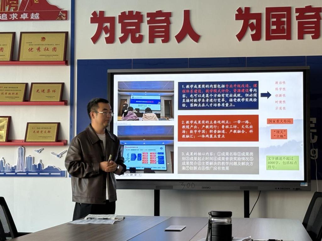 首先,苟强老师聚焦“职业公司产品成果申报培训”展开分享。他强调,教学成果奖内容需具备科学性、政治性、创新性、时效性、示范性等核心特质,且要选取与“国家重大布局相关”的重要观测点,对成果核要内容进行了清晰阐释,为教师参与教学成果申报理清思路、明确方向。