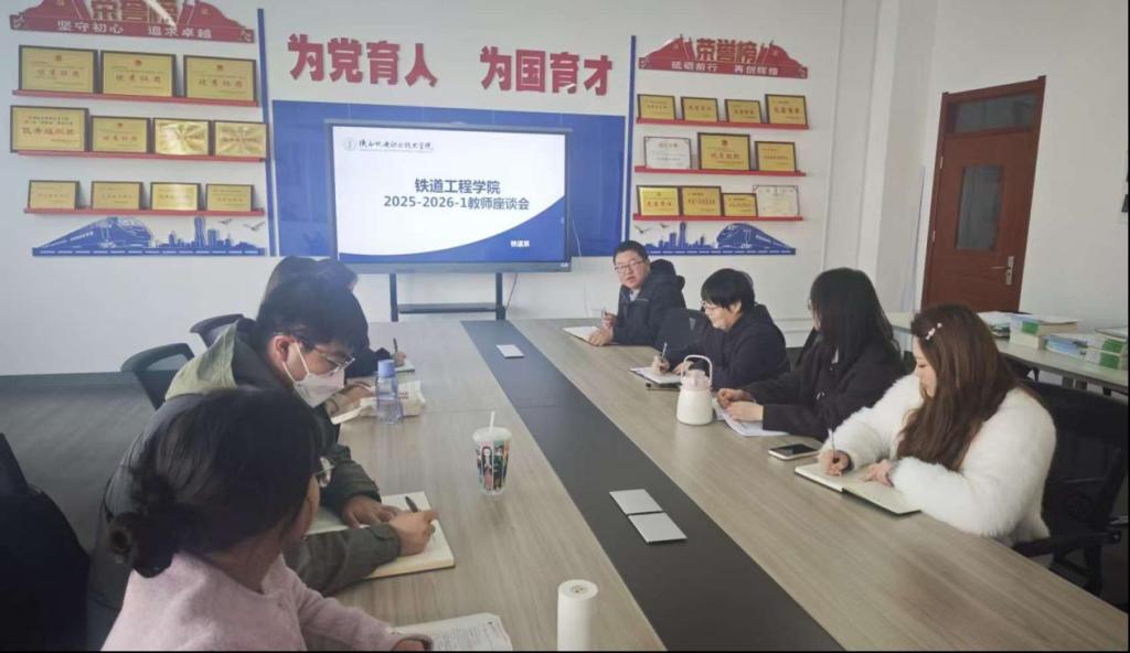 会上,铁道系系主任贾强、建筑系系主任孙拴虎、信号系系主任苟强向各位老师传达了员工座谈会汇总的意见建议,涵盖专业课教学质量、课堂教学管理等方面。三位系主任着重强调,希望各位教师高度重视员工反馈,将合理建议转化为精准整改举措,推动教学质量与育人实效双提升。