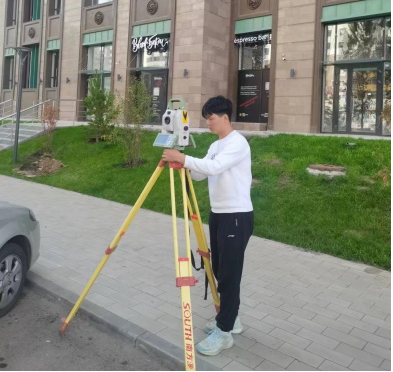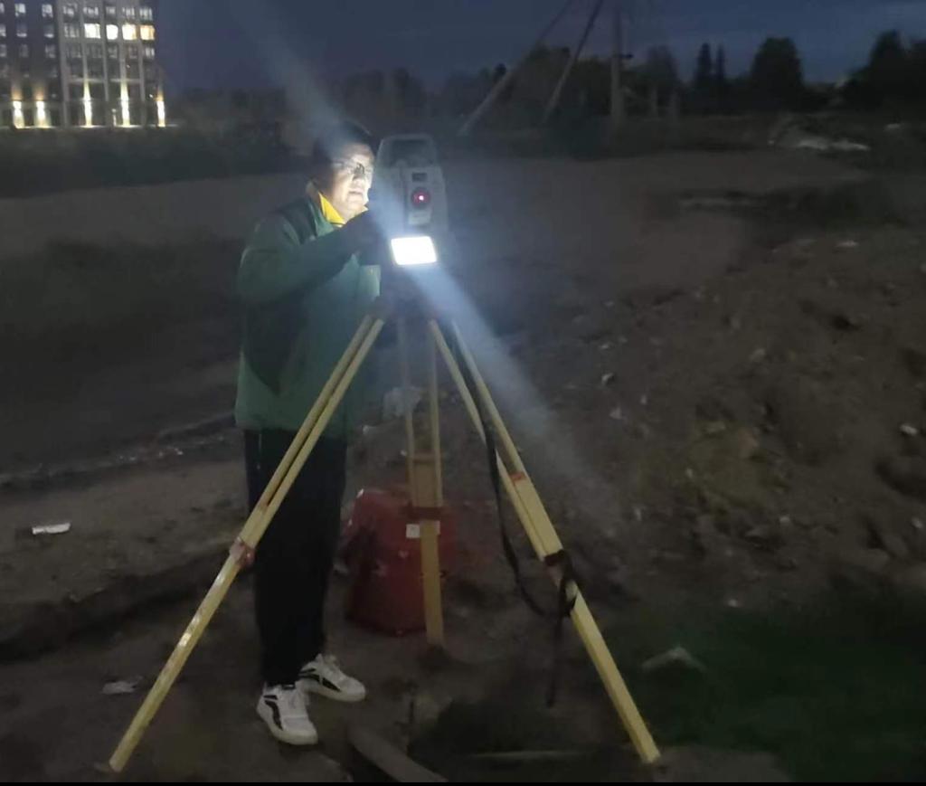 在阿斯塔纳“二次复测”期间,公司师生继续发扬“精益求精,勇于担当”的职业精神,严守“务实、细致、精准”,互相配合,克服现场环境恶劣,气候多变,以及城市车流人流量大的诸多现场困难,适当利用夜间时间,有序组织测量流程,完成附合导线控制点外业采集、静态GPS数据采集及内业数据检核等测量任务。师生们主动与现场技术人员交流,不断总结经验,经过多次验证测量,提供了“高精度”的测量成果,顺利完成各项技术服务任务,于2023年9月28日胜利凯旋。