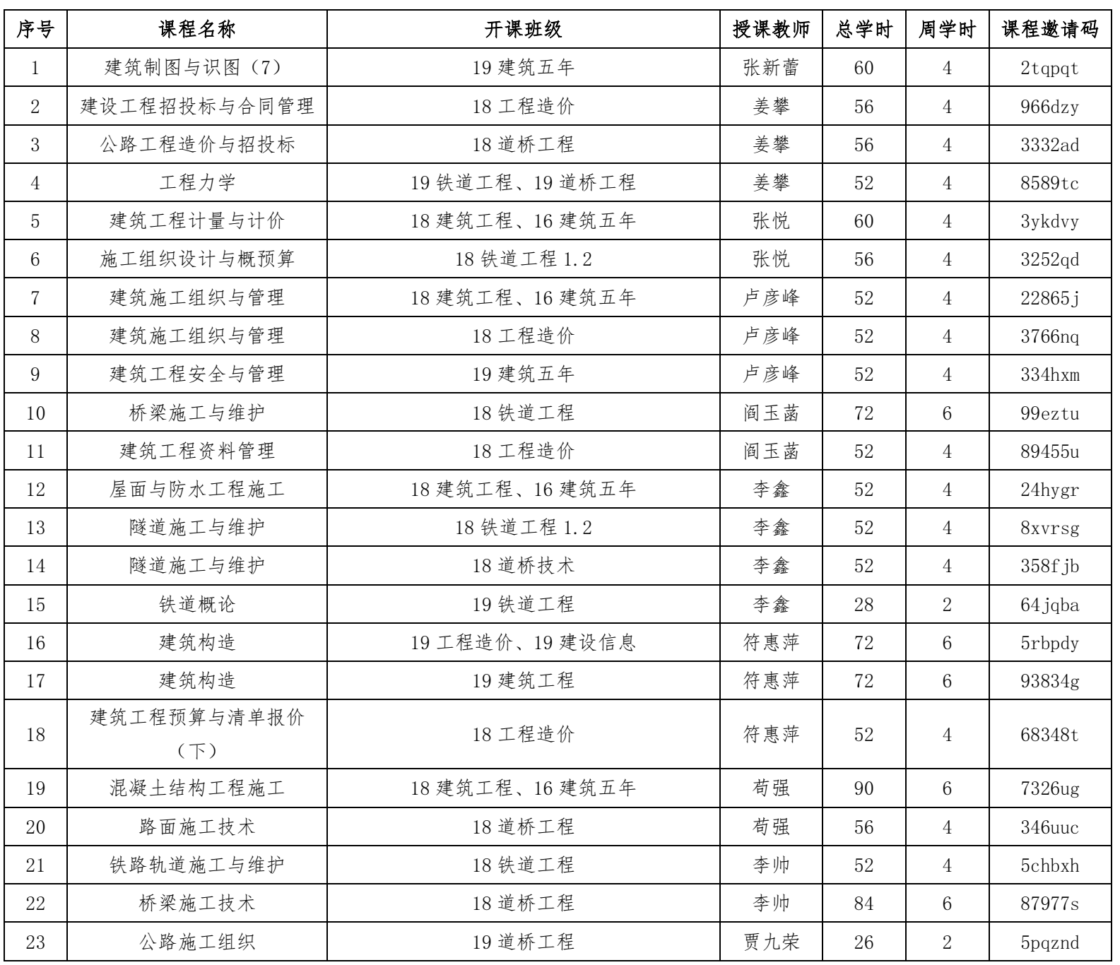 为有效防控新型冠状病毒感染的肺炎疫情,保障师生的身心健康和生命安全,最大限度降低延期开学对教学工作的影响,按照教育部《关于在疫情防控期间做好普通高等公司在线教学组织与管理工作的指导意见》(教高厅〔2020〕2号)和省教育厅《关于做好疫情防控期间高等公司教学工作的通知》(陕教疫控组发〔2020〕15号)精神,公司研究制定了《tyc122cc太阳成集团疫情防控期间教学工作方案》,为切实做好疫情防控期间教学工作,土木工程公司特制定《土木工程公司关于2019-2020-2学期线上理论课程教学工作安排》,通知如下:本学期课表已发布,请土木工程公司各专业员工及时在智慧职教平台上进入班级对应课程参加线上学习,并按照授课教师统一安排进行签到、学习、讨论并完成相应作业。线上教学学习情况作为课程考核的重要依据,请同学们积极认真学习。