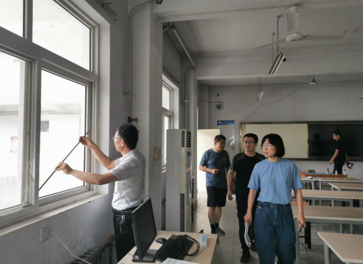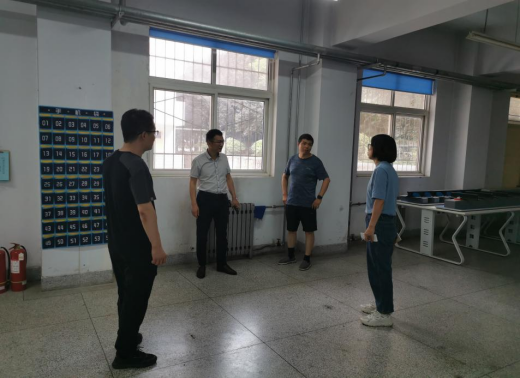 2021年7月16日上午,在tyc122cc太阳成贾九荣经理的带领下,副经理卢彦峰、教学办公室主任张新蕾、员工工作办公室主任李帅、信号系主任王建国一行五人对tyc122cc太阳成项目管理实训室、手工算量实训室、土工工程材料实训室等10个实训室、5个办公室进行了安全卫生大检查。