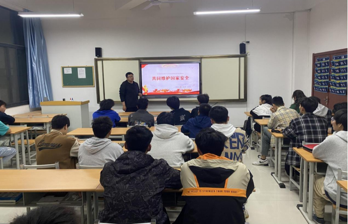 在班会上,辅导员老师通过多种方式给同学们普及了国家安全相关知识,让同学们深刻意识到国家安全和我们每个人息息相关。