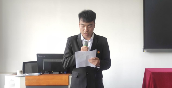 第二项,员工代表22铁道运管1 陈文奥发言,号召全院同学要积极参与本次评选活动,以实际行动将宿舍打造为优雅、美丽、进步的生活环境,让自己的校园生活变得更加充实、美好!