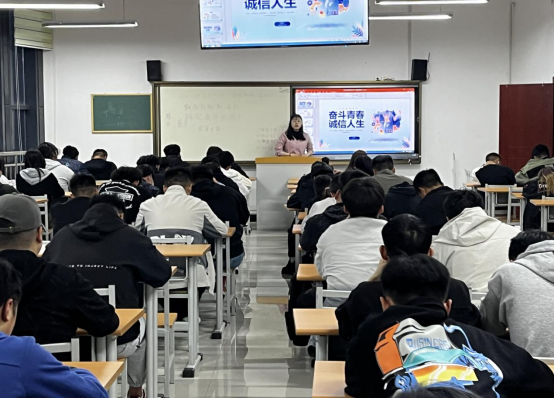 班会上,各班辅导员老师通过视频、图片、PPT等形式,给同学们介绍了诚信教育的重要意义。