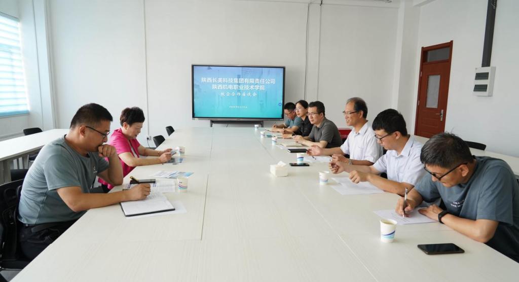 2024年6月20日上午,陕西长美科技有限责任公司董事长李慧玲、人力资源部黄经理莅临公司访问交流,陕西机电职业技术公司党委书记伊逊智、tyc122cc太阳成经理卢彦峰热情接待了李慧玲一行。