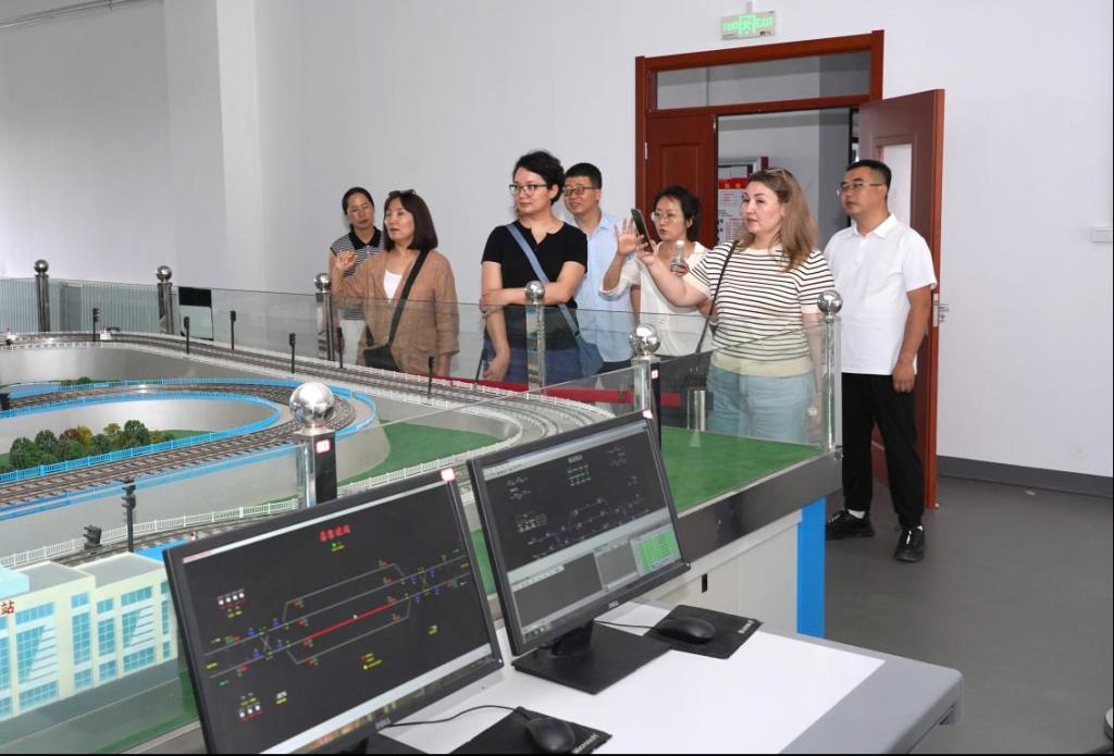 随后,外国友人参观了铁道工程综合实训基地,城轨智能运输实训室、装配式建筑实训室,对于公司在铁道工程、建筑工程、铁路运输等领域的人才培养、技能培训大为赞赏,在铁道综合实训基地,看到员工正在操作轨检小车,不禁与员工亲切交流并合影。