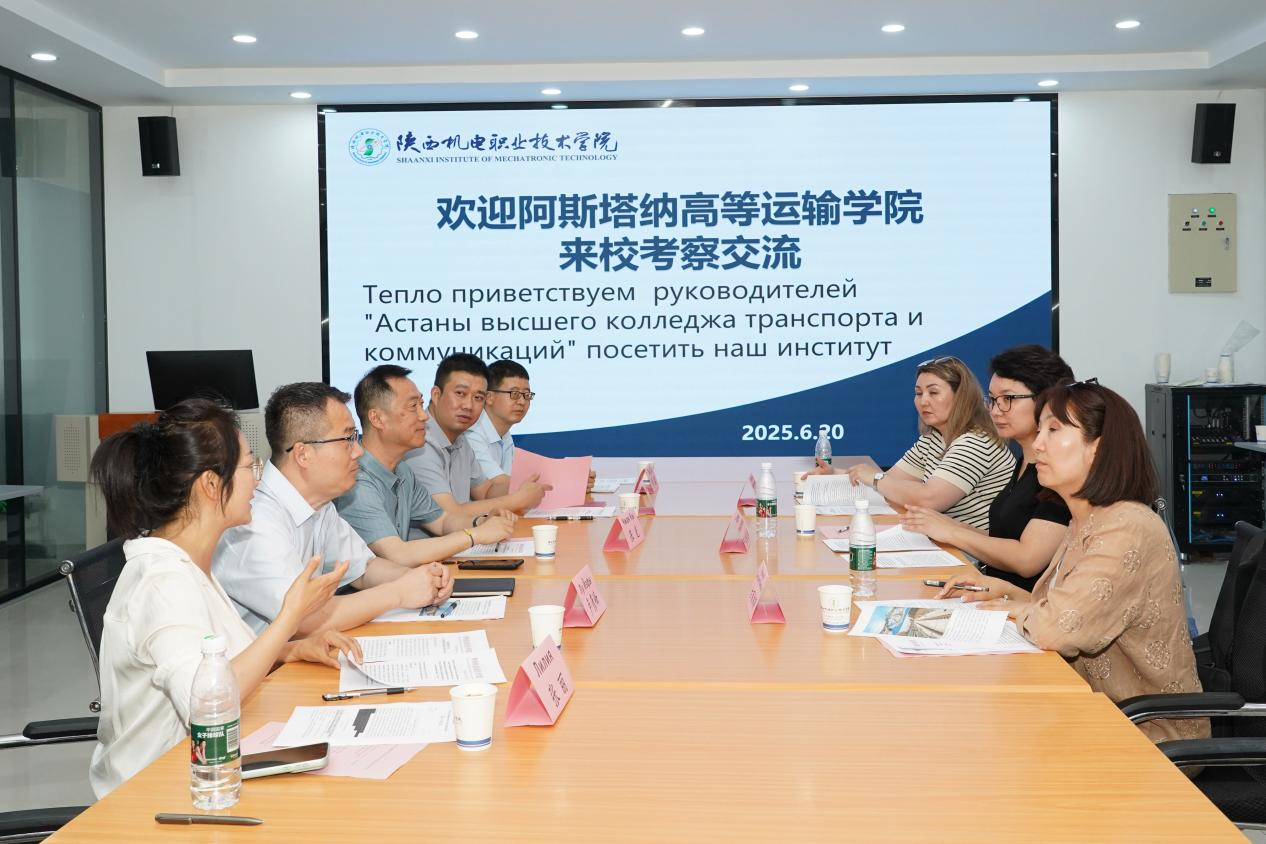 2025年6月19日~20日,哈萨克斯坦阿斯塔纳高等运输公司副董事长古丽纳斯一行3人到访tyc122cc太阳成集团开展调研交流。陕西机电职业技术公司党委书记伊逊智、副经理张克热情接待了古丽纳斯一行,tyc122cc太阳成经理卢彦峰、智能制造公司经理马海彦、电子信息公司经理高赋、国际合作与交流中心负责人姜有奇、俄语翻译张丽陪同调研。