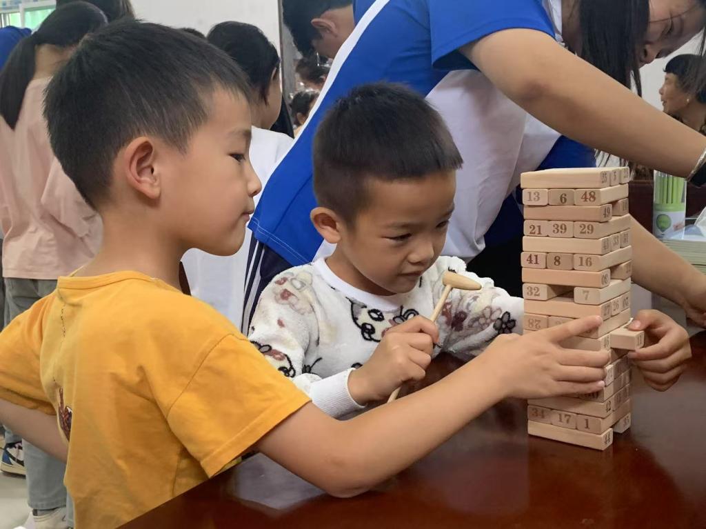在村里的儿童活动中心,实践团队与孩子们展开了一场别开生面的心理健康游戏互动。队员们组织了五子棋比赛、螃蟹赛跑、釜底抽薪、涂鸦画等一系列充满趣味与挑战的游戏。孩子们在游戏过程中热情高涨,欢声笑语回荡在整个活动场地。这些游戏不仅为孩子们带来了欢乐,更重要的是在游戏中培养了他们的团队协作能力、沟通能力以及面对困难时的应变能力,助力孩子们在游戏中提升心理健康素养,增强团队信任感与团体凝聚力。