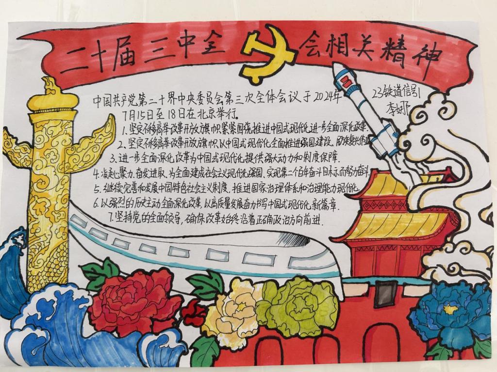 本次“学习党的二十届三中全会精神”主题手抄报活动是一次成功的教育实践活动,既丰富了员工的课余生活,为员工们提供了一个展示自我、交流思想的平台,也进一步推动了党的二十届三中全会精神在tyc122cc太阳成的深入贯彻和落实。同时,活动还加深了员工们对党的最新理论成果的理解和把握,增强了他们的爱国情怀和责任感。未来,tyc122cc太阳成将继续举办类似的活动,进一步推动党的理论学习与实践活动的结合,为培养更多具有责任感和使命感的新时代青年贡献力量。