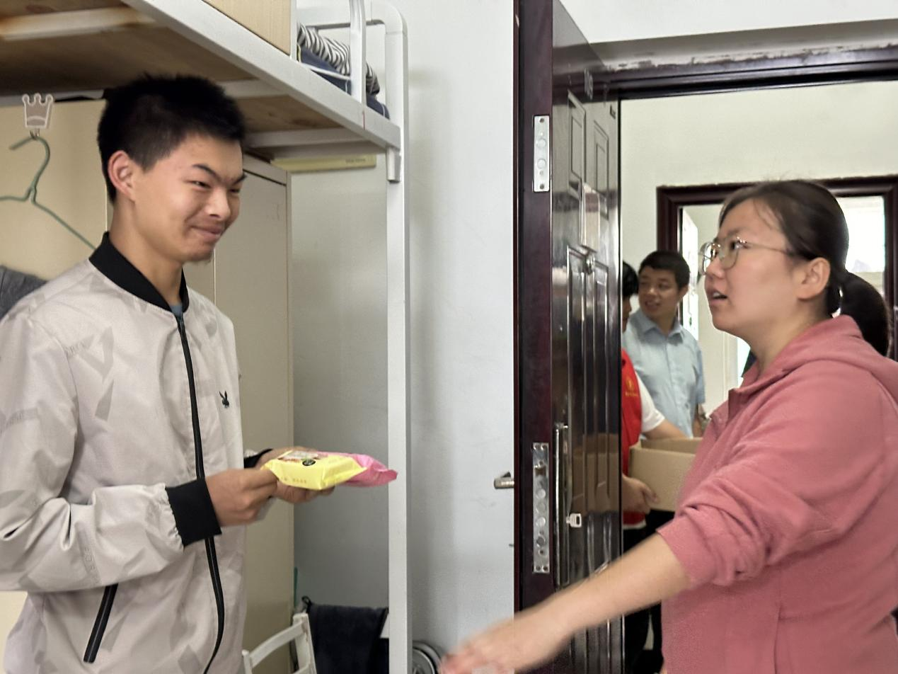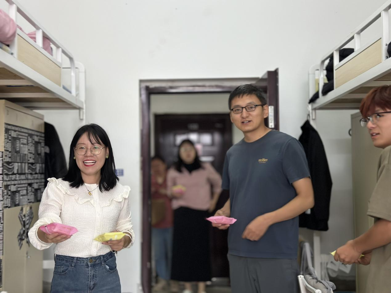 月光所照,皆为故乡。在这团圆佳节,领导与辅导员们深入宿舍,将一盒盒精心挑选、满载心意的月饼亲手送到同学们手中。每一块月饼,都蕴含着公司对同学们的深情厚谊与美好祝愿;每一次握手,都传递着师生间真挚的情感与温暖的关怀。