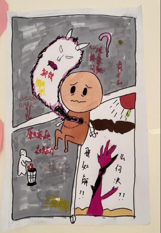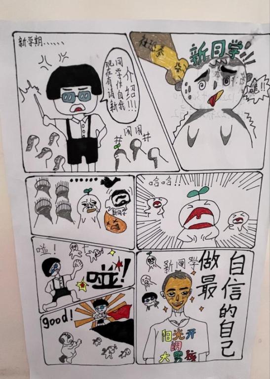 这些漫画作品包含单幅漫画、连环画等多种形式,作品将心理健康意识和心理健康水平以形象生动的艺术形式展示出来,反映了老员工对自我、对人际关系及对心理问题调适等的理解与感悟,同学们从漫画作品中体验到了心灵健康的美。