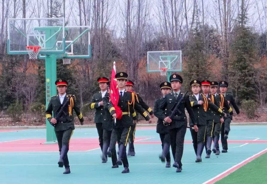 随着仪式的正式开始,全场师生肃立,气氛庄严。本次升国旗的重任交由23电气技术3班的王瑜同学担任擎旗手,他身姿挺拔,精神抖擞。护旗手则由23铁道工程4班的陈嘉合同学和24机电一体化1班的高宵博同学担任,他们紧随擎旗手,步伐整齐划一。在雄壮激昂的国歌声中,五星红旗冉冉升起,迎风飘扬。全体师生面向国旗行注目礼,齐声高唱国歌,那激昂的歌声回荡在操场上空,表达了师生们对祖国的无限热爱与崇高敬意。