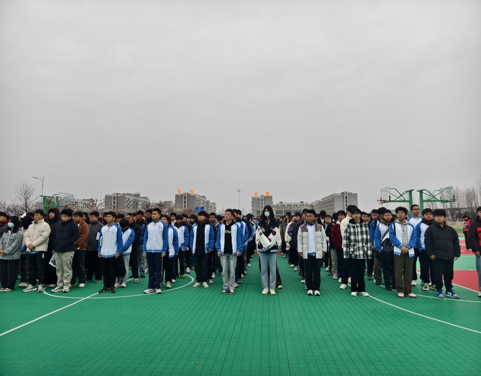 伴随着激昂的音乐,升国旗仪式正式拉开帷幕。第一项议程是出旗仪式。本次升国旗的擎旗手由24铁道工程管理专业的王荣同学担任,他步伐矫健有力,护送鲜艳的五星红旗迈向旗杆,尽显新时代青年的飒爽英姿与坚定信念。护旗手24机电技术1班的高宵博和24机电技术9班的杨立紧跟其后,身姿挺拔、神情肃穆,为升旗仪式增添了庄重神圣之感。指挥手由24铁道工程4班的赵鹏和24建筑消防2班的赵甜甜共同担任,他们手势精准、指挥有力,引领全场师生齐声高唱国歌,激昂的旋律在校园上空久久回荡,点燃了每个人心中的爱国热情与民族自豪感 。