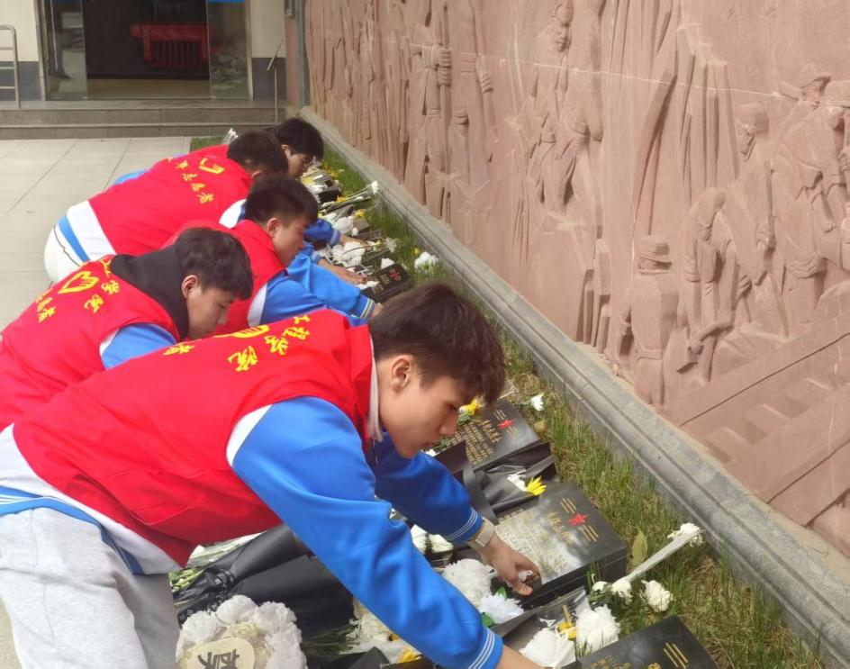 步访英烈纪念馆,擦拭墓碑守初心。仪式结束后,师生步入宝天铁路英烈纪念馆参观学习。一幅幅历史照片、一件件珍贵文件,生动展现了宝天铁路建设者不畏艰险、英勇奋斗的光辉历程。在“英雄墙”前,员工志愿者轻拭墓碑尘埃,以细致行动守护红色记忆。