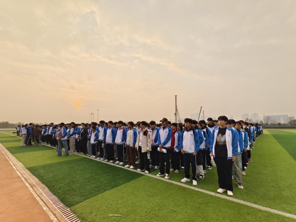 上午7时50分,仪式在庄严的氛围中正式开始。第一项为出旗环节。承担本次任务的擎旗手由24建工管理专业王荣同学担任,护旗手由25铁道工程5班连佳欣同学、25电气技术2班张哲楠同学担任,指挥手则由24机电技术9班杨立同学与25无人机技术2班王杨怡同学共同担当。在激昂的乐曲声中,旗手们步伐铿锵,护卫着国旗行进至国旗台前。