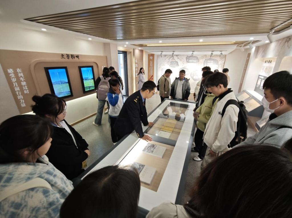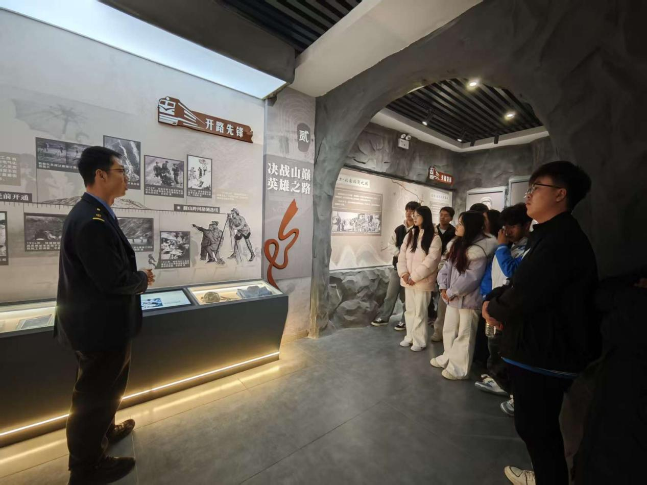 抵达目的地后,师生一行首先前往宝成铁路纪念馆。在纪念馆工作人员与列车员的联合引导下,大家通过珍贵的历史图片、实物展品、文献资料及场景复原,全方位了解了宝成铁路从规划、建设到运营的光辉历程。列车员结合自身工作经历,深情讲述了宝成铁路建设时期“逢山开路、遇水架桥”的奋斗故事,以及一代代铁路人坚守岗位、保障线路畅通的奉献事迹,生动诠释了“艰苦奋斗、无私奉献、爱岗敬业、敢为人先”的宝成精神。同学们驻足凝视、认真聆听,不时与列车员交流互动,深刻感悟到铁路工程背后蕴含的家国情怀与工匠精神。