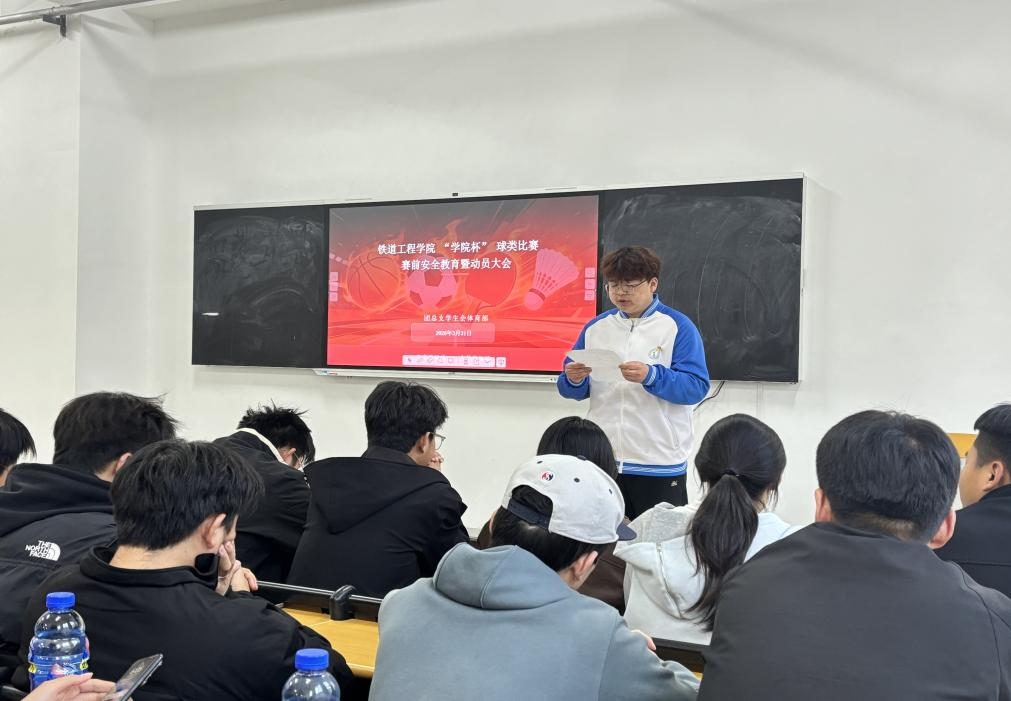 此次赛前安全教育暨动员大会,既全面强化了全体参赛人员的安全意识、纪律意识和责任意识,明确了备赛、参赛的核心要求,也有效凝聚了队伍力量、鼓舞了运动员的参赛士气,为“公司杯”球类比赛的顺利开展奠定了坚实的思想基础和组织基础。相信全体参赛运动员将以此次大会为契机,带着饱满的热情、昂扬的斗志和严谨的态度投入到比赛中,赛出风格、赛出水平,展现铁道学子奋勇拼搏、团结协作的青春风采。