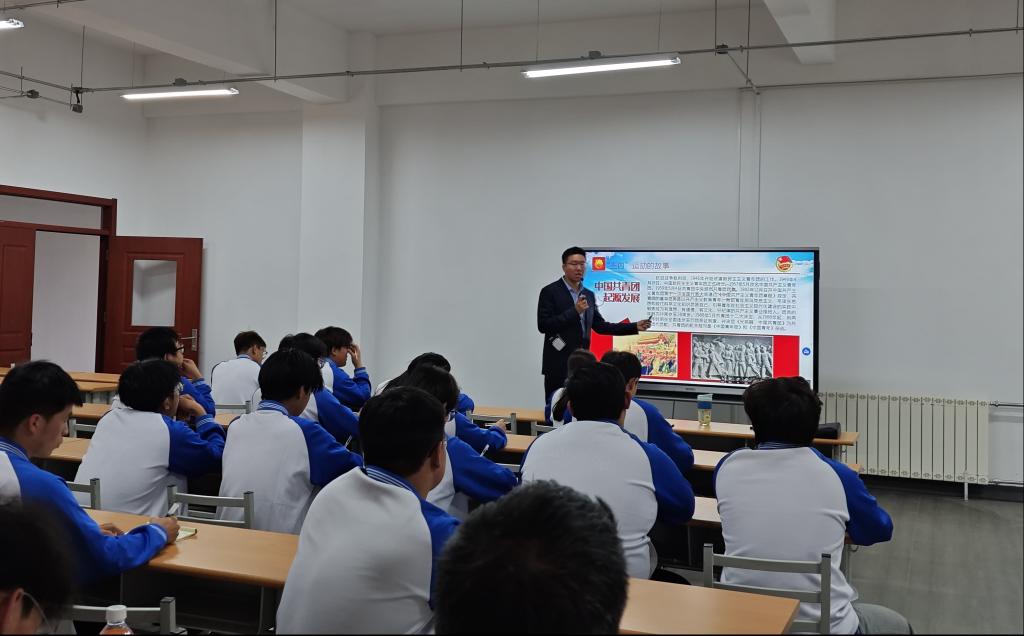 “青年如初春,如朝日,如百卉之萌动。如利刃之新发于硎,人生最可宝贵之时期也。”团课第一讲,团总支书记李帅介绍了青年学子的责任、共青团的基本知识、入团的意义。他讲到,共青团作为党的助手和后备军,党旗所指就是团旗所向,青年学子们要立志高远,谨记时代赋予的重任,努力学习,在实践中长才干,争做有理想、敢担当、能吃苦、肯奋斗的新时代好青年。