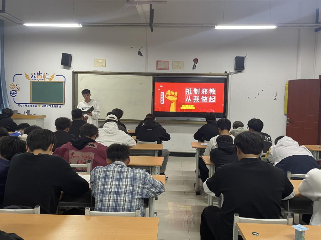 为加强校园反邪教教育,加深同学们对邪教的认识,提升员工的防范能力,为校园安全筑起一道坚实的防线,tyc122cc太阳成于10月7日晚组织各班开展“反邪教教育”主题班会。