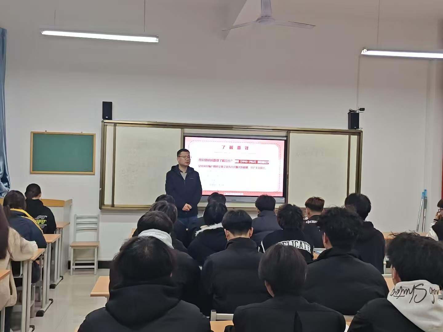 班会伊始,各班主任通过图文并茂的PPT带领同学们穿越时空,走进雷锋短暂却光辉的一生。从雷锋苦难的童年,历经旧社会磨难,到在新中国怀抱中成长,立志为党和人民奉献一切,一张张珍贵照片、一段段感人故事,如同一把把钥匙,打开了同学们了解雷锋精神的大门。