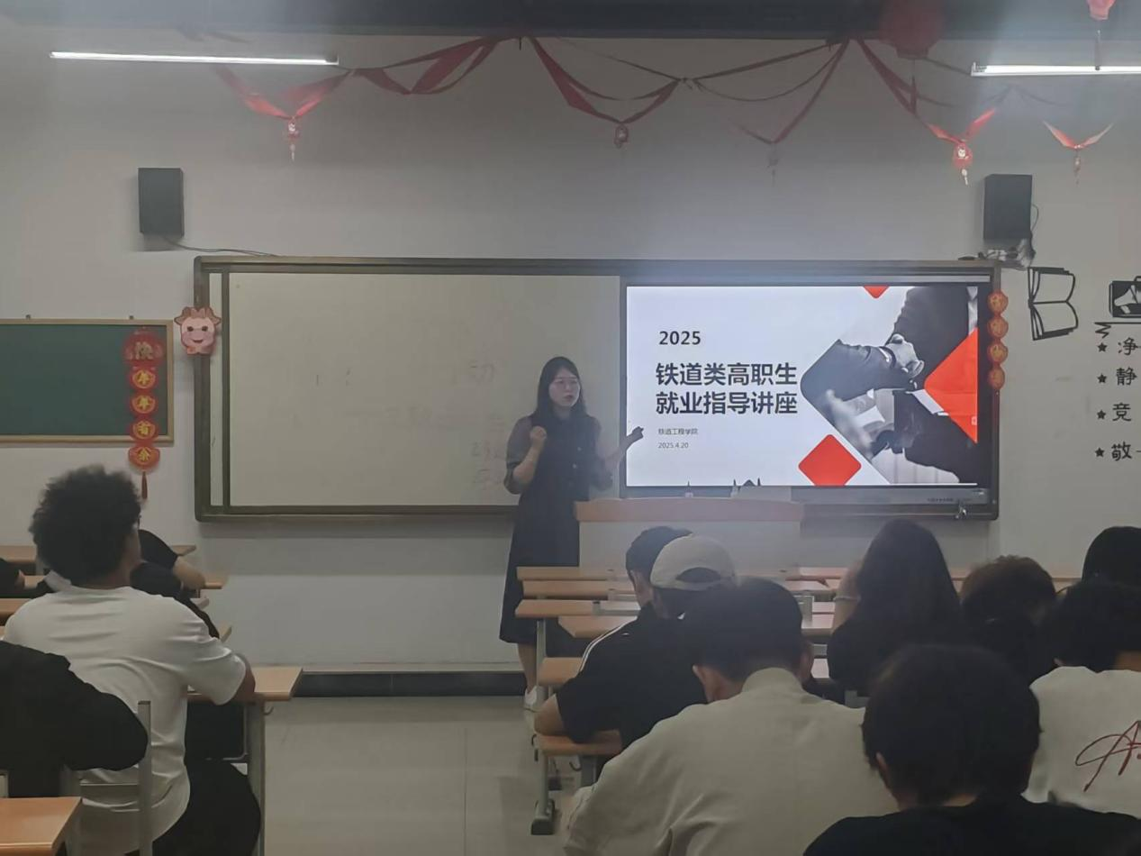 首先,杨老师给同学们介绍了当前的就业形势以及相关的就业政策,并围绕铁道类相关专业员工的就业特点,向同学们介绍了实习及就业相关内容,帮助员工明晰职业规划。她指出,铁道行业对实操技能要求极高,无论是铁路线路维护、机车检修,还是信号系统调试,都需要同学们在实习中沉下心来,虚心向企业导师学习,熟练掌握专业设备操作技能,同时注重团队协作能力和职业规范意识的培养。杨老师引导同学们分析自己的兴趣爱好和就业优势,制定短期、中期和长期就业及发展计划。
