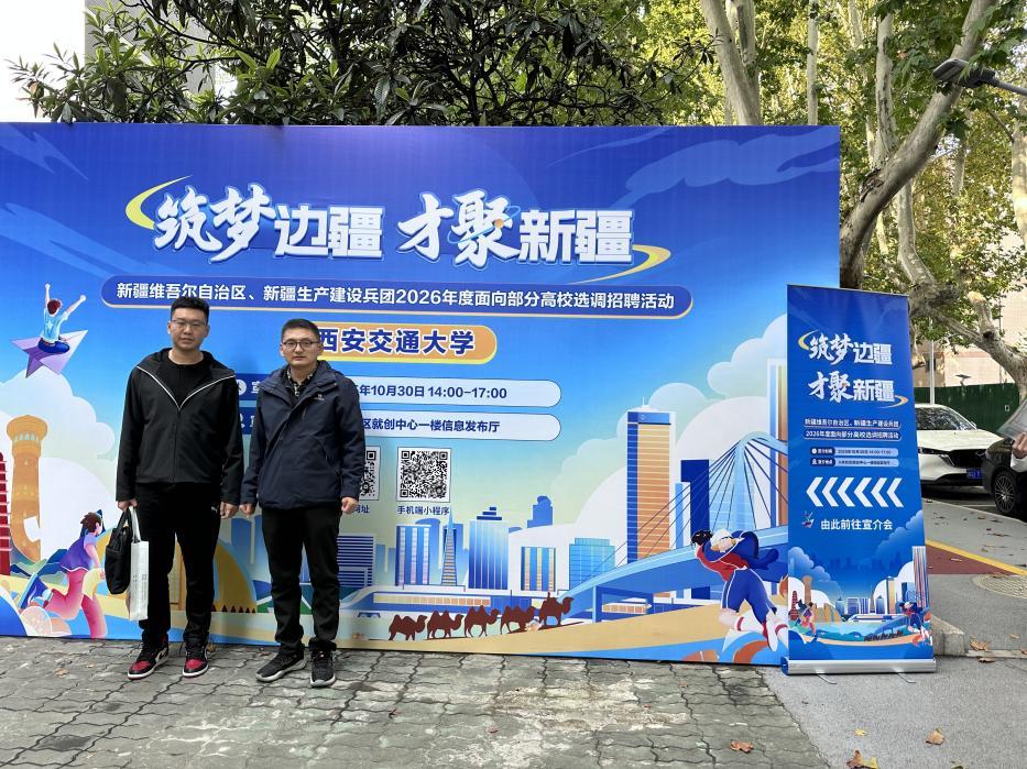 为实现人才精准对接,促进高质量就业。10月30日,tyc122cc太阳成学工办主任李帅、专职辅导员张帅赴西安交通大学兴庆校区,参加四川、新疆组团引才招聘活动。